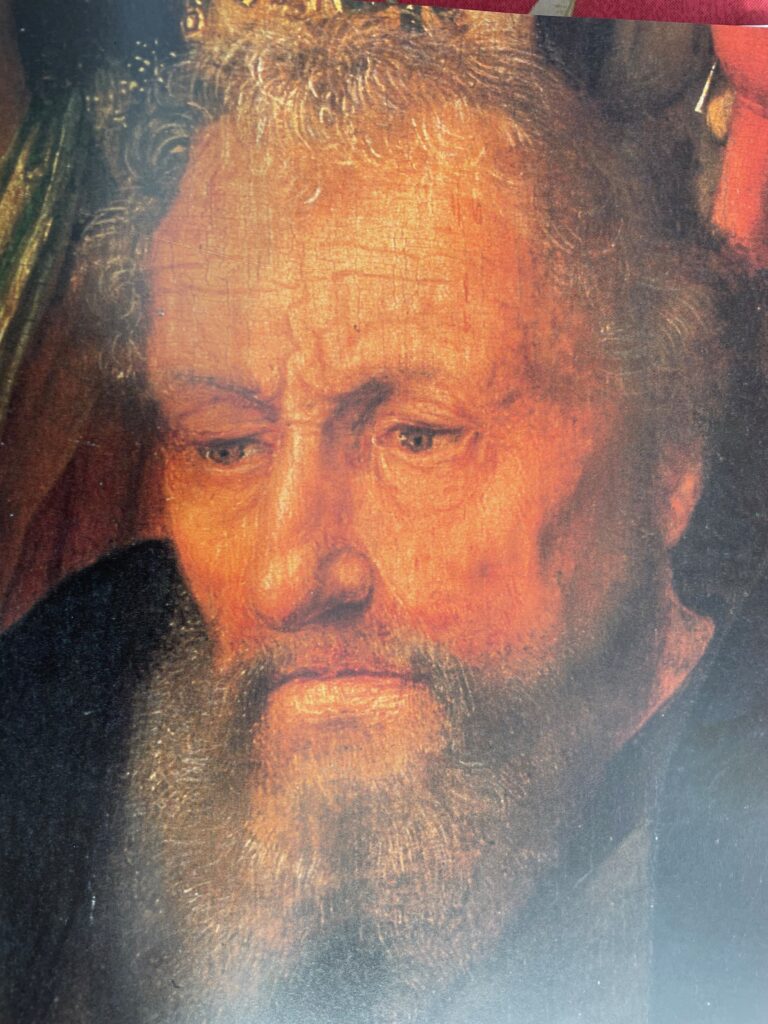 Gezien de afmetingen (84 x 68 cm) is het verbazend gedetailleerd: kijk bijvoorbeeld naar de baard van Jozef. Elk afzonderlijk haar is te zien, en om dat te schilderen had Gerard David in 1490 al leerlingen en gezellen).