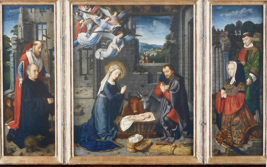 Dit is het enige schilderij van Gerard David waarop de pasgeborene in de kribbe ligt.