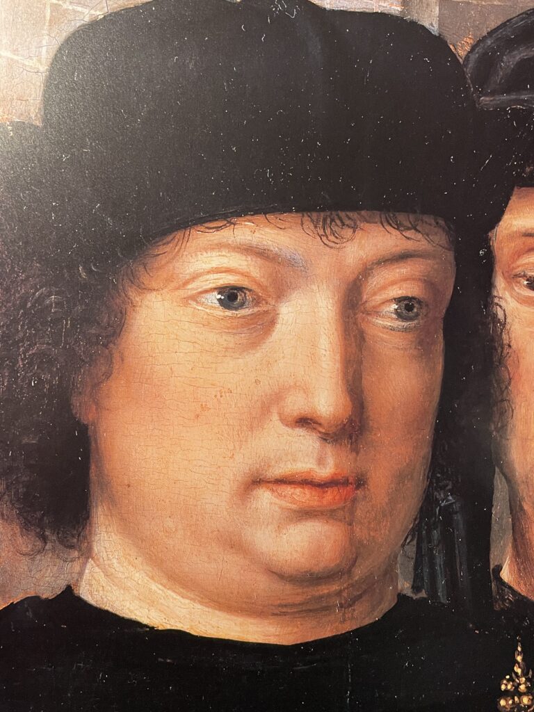 Op hetzelfde paneel staat ook graaf Engelbert van Nassau, links achter Cambyses. Tot 1494 was hij regent in naam van Filips de Schone.